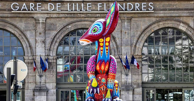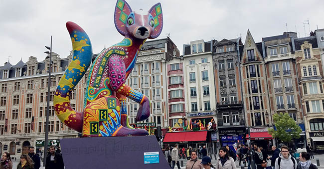 Sin duda, la exposición más visible y exitosa fue LES ALEBRIJES SUR LA RAMBLA. El Ayuntamiento de Lille encargó diez alebrijes de 7 metros de altura para su instalación a lo largo de la avenida principal de Lille (Rue Faidherbe). Los alebrijes fueron diseñados y elaborados por artistas y artesanos en México y enviados a Lille, donde permanecieron durante ocho meses, ganándose la admiración de miles de espectadores.