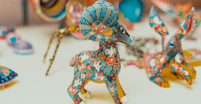 En el taller de tallado en madera ubicado en San Martín Tilcajete, Ocotlán de Morelos, que comparte con sus hermanos Cándido, Alberto y Aarón, María pinta las piezas que sus hermanos elaboran: figuras como conejos, cerdos, tucanes, gacelas, perros y, por supuesto, ángeles y vírgenes. El pincel se desliza suavemente y se aprecian los diseños de flores y mariposas, lo que hace que las figuras sean más coloridas y vistosas, adquiridas por coleccionistas.